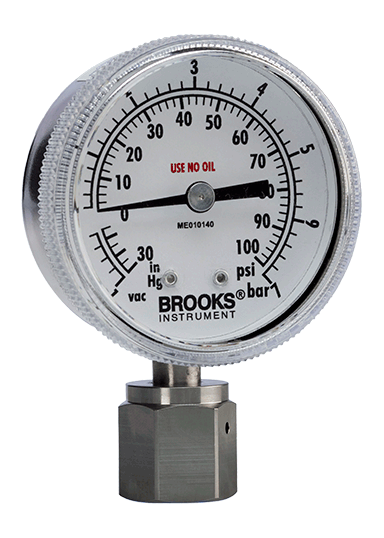 The Brooks Instrument 122 Series mechanical pressure gauges were designed and developed for the demanding high-purity applications of the semiconductor industry. Made of stainless steel, our mechanical pressure gauges feature an accuracy of 1% of full scale. These two inch gauges are durable measuring devices that come in a variety of process connections, pressure ranges, and socket orientations, offering a reliable and efficient way to monitor pressure locally. Get precise, high-performance results from the world's leading pressure gauge supplier.