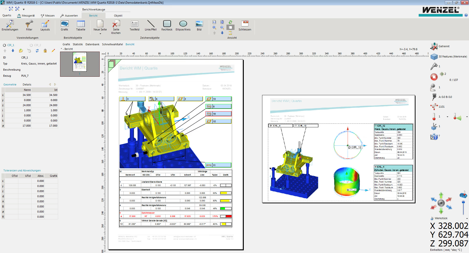 Significant measurement reports can be generated even faster and easier. The WM | Quartis user interface based on Microsoft Office Fluent makes it significantly easier to use the powerful functions. You get accurate measurement results, impressive test reports and meaningful statistics faster and easier. The optimized screen layout and the dynamic, results-oriented multifunction bars significantly speed up work processes and ensure greater efficiency in day-to-day business. WM | Quartis is also able to generate traditional measurement reports from point clouds and CT data in combination with WENZEL software products WM | PointMaster or WM | CT Analyzer.